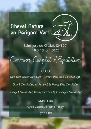 Le prochain concours complet d'équitation organisé par Cheval Nature en Périgord vert aura lieu les 18 & 19 juin 2022 !